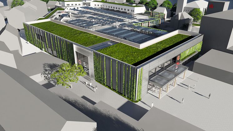 The retail centre in Datteln is an important central hub for the surrounding area's infrastructure. It will feature a parking deck with 199 parking spaces, an underground garage with 63 spaces, and a large rooftop photovoltaic installation by Greenman Energy.