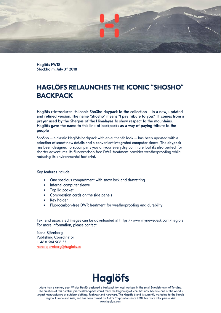 HAGLÖFS RELAUNCHES THE ICONIC “SHOSHO“ BACKPACK