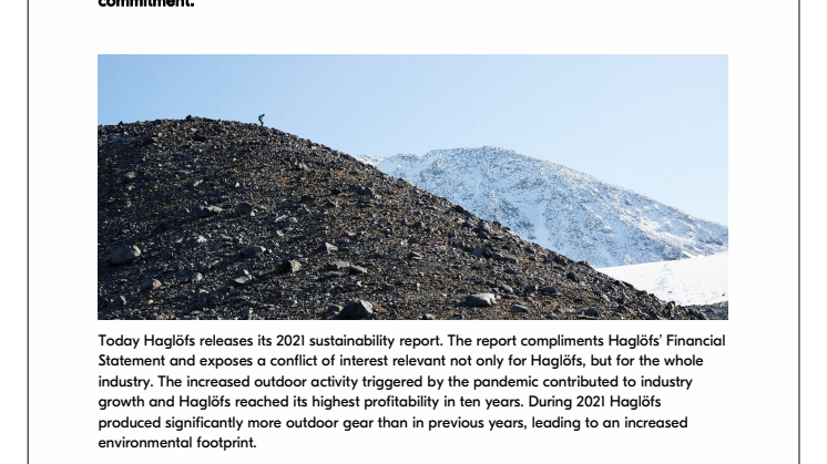 Today Haglöfs releases its 2021 sustainability report. The report compliments Haglöfs’ Financial Statement and exposes a conflict of interest relevant not only for Haglöfs, but for the whole industry. The increased outdoor activity triggered by the pandemic contributed to industry growth and Haglöfs reached its highest profitability in ten years. During 2021 Haglöfs produced significantly more outdoor gear than in previous years, leading to an increased environmental footprint.