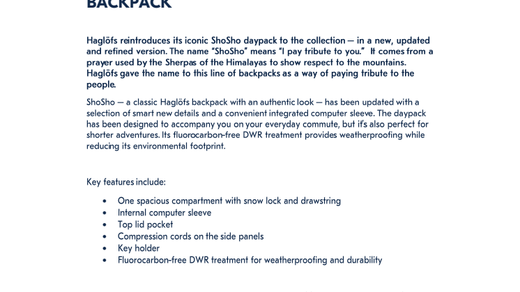 HAGLÖFS RELAUNCHES THE ICONIC “SHOSHO“ BACKPACK