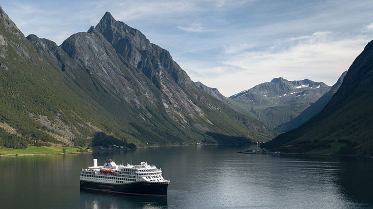 Beispielsweise segelte er vor einigen Tagen in den Trollfjord – vollständig leise und nur batteriebetrieben. Und diesen Freitagnachmittag segeln wir in den Hjørundfjord, genauso leise. Das möchte Havila Kystruten während der ganzen Periode, in der wir die Fjorde besuchen, weiterführen – vom 1. September bis zum 31. Oktober, auf der Nordfahrt der Küstenroute.