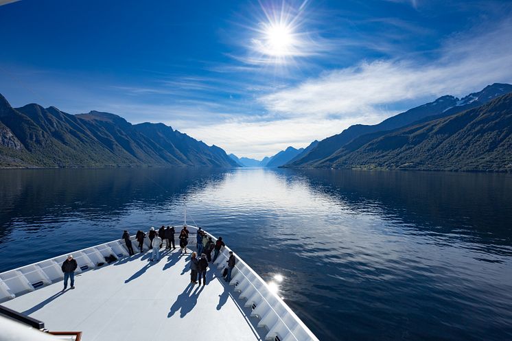 „Der Hjørundfjord ist eines von zwei Wundern. Das stimmt schon, der Geirangerfjord ist auf der Liste des Weltkulturerbes und hat mehrere Wasserfälle und Besonderheiten, die der Hjørundfjord nicht hat. Dennoch, wenn wir in den Fjord segeln und zwischen den zwei majestätischen Bergen anhalten, umrundet von einer außergewöhnlichen Aussicht… Meiner Meinung nach ist der Hjørundfjord genauso schön und wichtig wie der Geirangerfjord.“