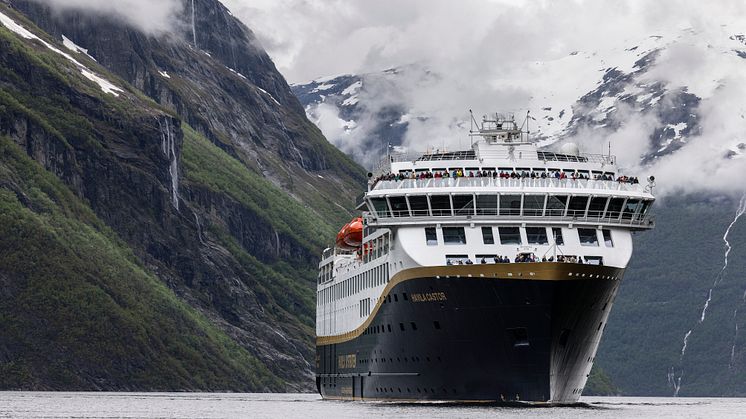 The four new ships are loaded with the world's largest battery pack, and can sail for four hours without noise or emissions through vulnerable fjords. The batteries are charged with clean hydropower at shore, and when the batteries are low we switch to natural gas which cuts CO2 by around 25 %.