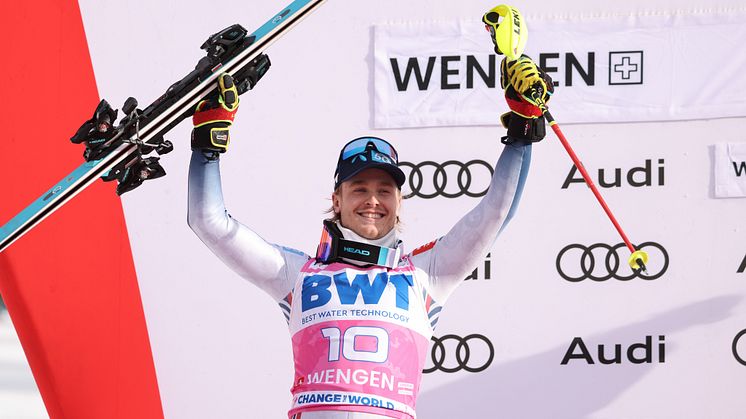 On Sunday, Atle Lie McGrath again confirmed his top form in the Slalom. The Norwegian athlete finished second, just like a week earlier in Adelboden. In Wengen, he missed victory by just one tenth of a second, having clocked the fastest time on the first run. "I'm very happy, it was so close again, but that's really cool. It was incredibly difficult for me to focus because of Aleksander Aamodt Kilde's accident, but it worked out pretty well," said a relieved Atle Lie McGrath at the finish. Johannes Strolz from Austria finished the race in 15th place.