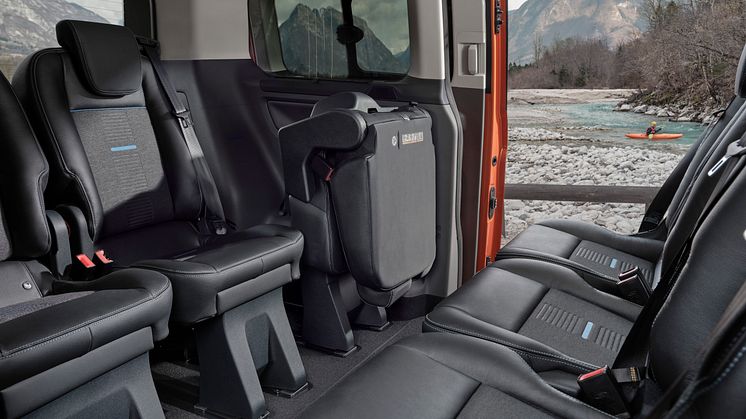 A sokoldalú Tourneo Custom Active belső tere könnyen a pillanatnyi igényekhez alakítható. Az ülések variálásával megnövelhető az utasoknak vagy a csomagoknak jutó tér, sőt az ülések be is fordíthatók a konferencia-konfigurációba, vagy kiemelhetők az autóból, ha még tágasabb rakodótérre van szükség. Az ülések bekötési pontjai biztonságos kerékpár-rögzítő pontokként használhatók.