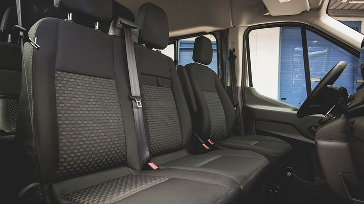 Átfogó vezetősegítő rendszeréért az E-Transit máris elnyerte a járművek biztonságát vizsgáló független szervezet, az Euro NCAP Aranyérmét. Az autóhoz olyan technológiák kaphatók, mint a Gyalogosészlelővel kiegészített Ütközésre Figyelmeztető rendszer10, a Közlekedési Tábla Felismeréssel összekapcsolt Intelligens Adaptív Sebességtartó Automatika10, a Sávváltásra Figyelmeztető és Segítő rendszerrel kombinált Holttérfigyelő10, a Sávelhagyásra Figyelmeztető rendszer10, a Sávtartó rendszer10 és a Kereszteződés Asszisztens10.
