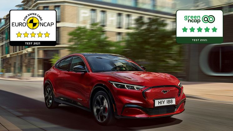 A tisztán elektromos hajtású Ford Mustang Mach-E mind a biztonság, mind a környezettudatosság tekintetében tökéletes, 5 csillagos eredményt ért el