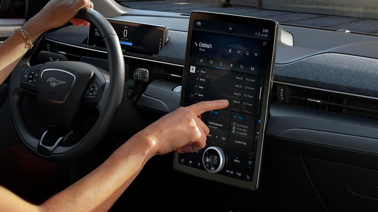 A Mustang Mach-E fedélzetén 15,5 colos Full HD érintőképernyőn keresztül vezérelhető az új generációs SYNC rendszer. A nagyméretű, felhasználóbarát konzol egyetlen pillantással könnyen leolvasható; a kezelőfelület minimalista kialakításának köszönhetően rendezetten, könnyen értelmezhető módon tájékoztatja a vezetőt. Az okostelefonoknál megszokott, kétujjas parancsok (nagyítás, kicsinyítés, forgatás) itt is működnek; a képernyő alján elhelyezett, jellegzetes tárcsával pedig gyorsan és pontosan szabályozható a zenelejátszás vagy a konferenciahívás hangereje.