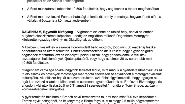 2017. szeptember 4. – A Ford Motor Company ma közzétette 18. Fenntarthatósági Jelentését – és ezzel együtt egy rövidfilmet is – amiben részletesen ismerteti a környezetvédelem terén elért eredményeit és azon elkötelezettségét, hogy továbbra is aktívan dolgozzon a fenntarthatóság megteremtésén.