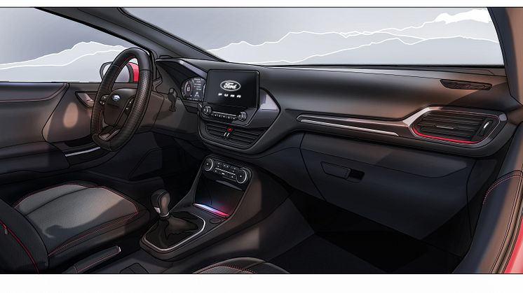 Az ST-Line kivitel látványos sárvédőelemei a légfüggöny beömlőihez irányítják a levegőt. A Puma ST-Line utasterében lapos alsó karimájú kormánykereket találunk, valamint látványos vörös varrással díszített kárpitokat, amelyek részlegesen bőrből is készülhetnek. A modellváltozat sportos karakterét alumínium pedálsor és sebességváltó, valamint fekete tetőkárpitozás hangsúlyozza ki.