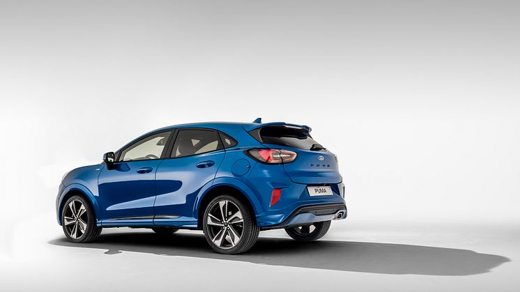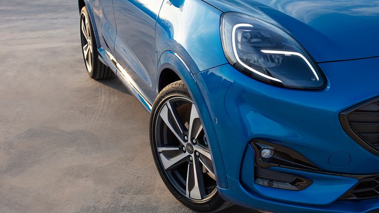 A Ford Performance autóinak stílusát idéző Puma ST-Line alapáron 17 colos, matt fekete könnyűfém keréktárcsákat kap, a sportfutóműben pedig speciális hangolású rugók és lengéscsillapítók vannak. Az ST-Line matt fekete hűtőrácsát fényes fekete keret öleli körül, ahogy a ködfényszórók peremét és az opcióként rendelhető nagyobb, funkcionális tetőlégterelőt is ragyogó fényezés díszíti.