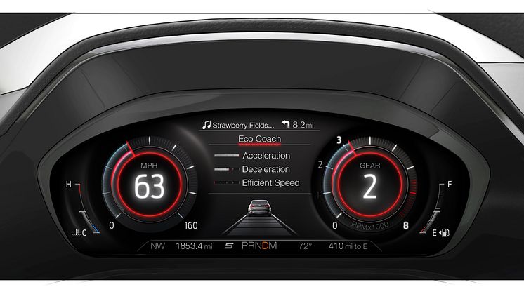 A 12,3 colos, teljes mértékben konfigurálható digitális műszeregységen az autósok a saját ízlésükhöz igazíthatják – és fontossági sorrendbe állíthatják – a vezetéssegítő technológiák és a műholdas navigáció információit. A műszeregység szabadformázású technológiával készül, ezért a felső élét le lehetett kerekíteni, hogy belesimuljon az utastér dizájnjába. A szabadformázású panelben az áramkörök a kijelzőbe vannak beágyazva, ami lehetővé teszi a tervezők számára, hogy – túllépve a hagyományos téglalap formátumon – más alakúra formálják a képernyőt.