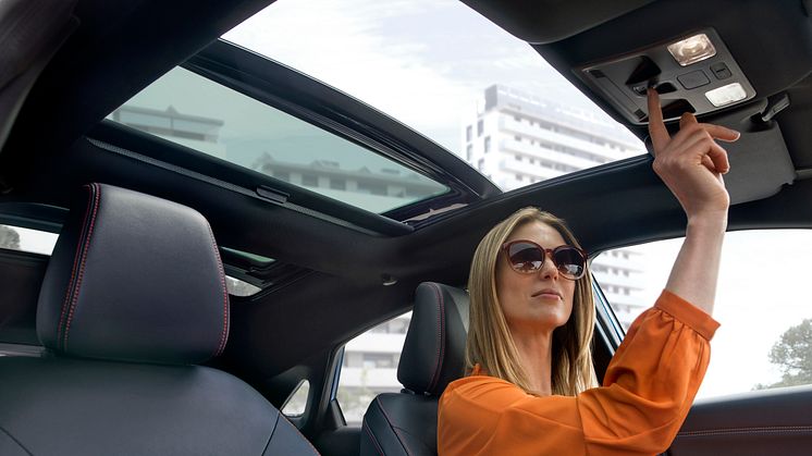 Az utastér teljes hosszúságában – és szinte teljes szélességében – végigfutó, nyitható panorámatető két edzett, színezett üvegfelületének köszönhetően a kabin még tágasabbnak és levegősebbnek érződik.