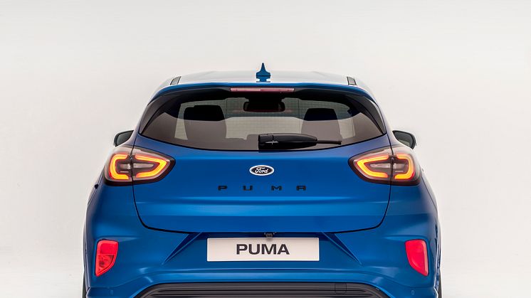 A Puma mélyre húzott, ereszkedő tetővonala karakteres és azonnal felismerhető sziluettel ruházza fel az autót, elrugaszkodva az ’ék alakú’ crossover-trendtől, sőt egyfajta ’anti-ék’ dizájnt megformálva, amelyben a laposabb övvonal kiegyensúlyozottabb arányokat biztosít. A Ford formatervezői a mérnökökkel együttműködve alkották meg azokat a formákat, amelyek azonnal érzelmeket ébresztenek a szemlélőben, és amelyeknek köszönhetően a Puma nem csupán stílusos, hanem praktikus jármű is, amibe könnyű ki- és beszállni, és tágas, jól kihasználható csomagteret kínál.