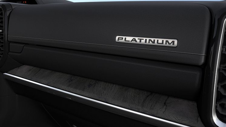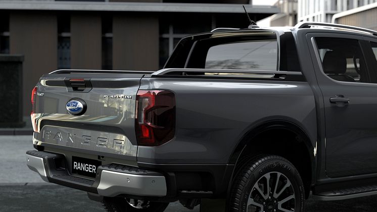 A Ranger Platinum ütős megjelenését az egyedi hűtőrács és az új selyemfényű krómfelületek alapozzák meg; a látványt új, 20 colos, csiszolt felületű könnyűfém keréktárcsák és csillogó ébenfekete felületek teszik teljessé. A prémium megoldások közt olyan elemeket találunk, mint a puhán záródó platóhátfal, a sötétített üvegezés, vagy a mátrix LED fényszórókba épített jellegzetes nappali menetvilágítás. Az alapáras tetősínek céltudatos megjelenéssel és extra praktikummal ruházzák fel az autót.