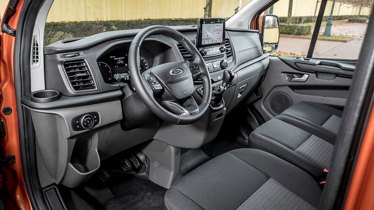 A merész, új orr-résszel kialakított egytonnás áruszállító ideális mobil irodai környezetet kínál felhasználói számára, s a teljesen újratervezett kabinban kategóriaelső tárolóhelyek, magasabb szintű komfort és ergonómia várja a vezetőt, nem beszélve a SYNC 3 vagy a MyFord Dock opciók által nyújtott egyszerű és praktikus csatlakozási lehetőségekről. A fejlett technológiák hosszú sorában a haszongépjárművek közt elsőként bevezetett Intelligens Sebesség Határoló is megtalálható.