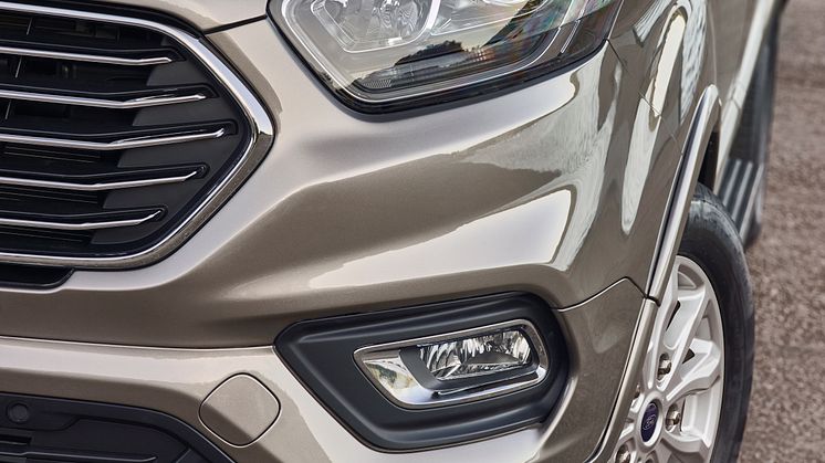 Az új Tourneo Custom ugyanazzal a merész orrkialakítással készült, mint a Ford legújabb személyautói: az autó legjellemzőbb formai megoldásai a magasra húzott, trapéz alakú hűtőrács és a dinamikus, keskeny fényszórók, amelyek szinte észrevétlenül olvadnak bele a határozott övvonalba.