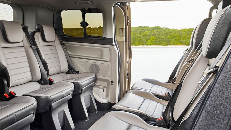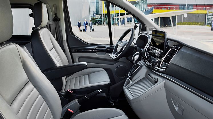 A kínálat csúcsát jelentő nyolc/kilencüléses Tourneo Customot új, látványos orrkialakítás jellemzi; a személyszállító vadonatúj, prémium utastere akár kilenc személy számára is első osztályú utazást kínál. Az exkluzív shuttle-járatokat üzemeltető cégeket és az egyéni vásárlókat egyaránt megszólító új Tourneo Custom látványosan új orrkialakítása tágas és luxusszínvonalú kabinjában a szegmensben egyedülálló ülések várják az utasokat; a hat, különálló ülés akár ‘konferencia elrendezésben’ is beállítható, ha a második sor üléseit a menetiránynak háttal fordítják.