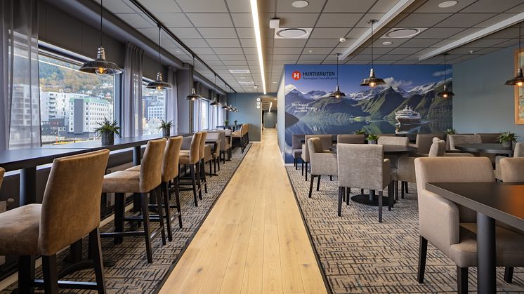 - Bergen Lounge: Our guests will start the journey in style at our luxurious lounge in Bergen. Here they will get a taste of Norway’s Coastal Kitchen, they can book excursions and relax in comfortable surroundings ahead of their big adventure.