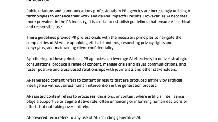 The declaration concludes: "AI should complement, not replace, the invaluable expertise, judgment and creativity that PR professionals bring. AI's implications will keep evolving; thus, adaptability and vigilance are paramount."