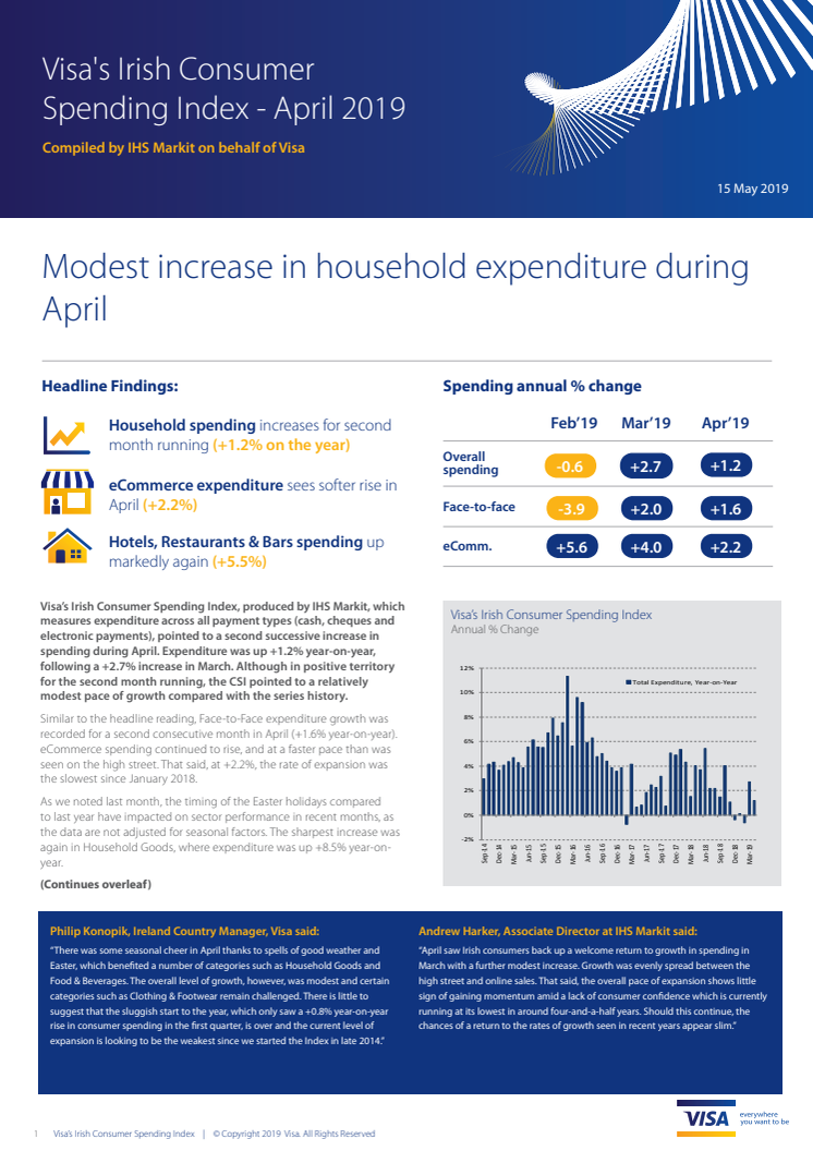 measures expenditure across all payment types (cash, cheques and electronic payments), pointed to a second successive increase in spending during April. Expenditure was up +1.2% year-on-year, following a +2.7% increase in March.