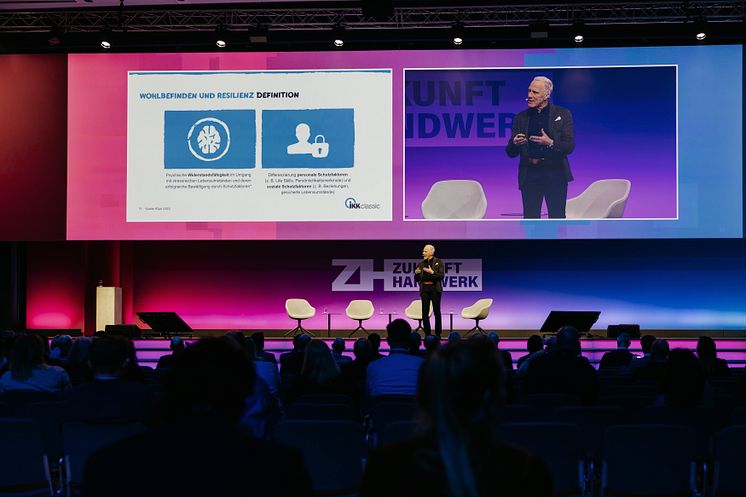 München, 13. März 2025. Wie können Handwerksbetriebe qualifizierte Fachkräfte gewinnen, ihre Mitarbeiterinnen und Mitarbeiter langfristig an den Betrieb binden und ältere Beschäftigte dabei unterstützen, bis zur Rente gesund und arbeitsfähig zu bleiben? Antworten auf diese Fragen gab heute auf der ZUKUNFT HANDWERK Prof. Dr. Ingo Froböse von der Deutschen Sporthochschule Köln in seiner Keynote „Handwerk in Bestform: So bleiben Beschäftigte dauerhaft gesund und leistungsfähig".