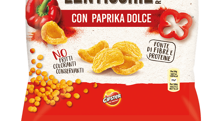 Le chips di lenticchie rosse, ideate per entrare a pieno titolo nella famiglia Cipster, richiamandone il logo, il classico pack, la forma e l’irresistibile croccantezza sono disponibili in formato da 80 grammi nelle varianti ‘Con un pizzico di sale’ e ‘Con Paprika dolce’.