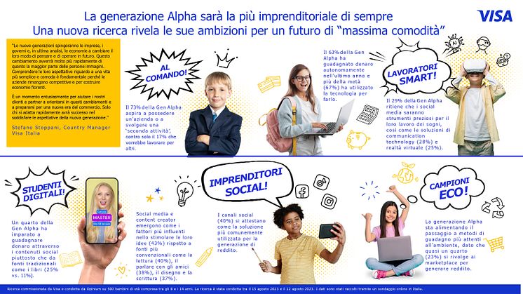 La generazione Alpha sarà la più imprenditoriale di sempre Una nuova ricerca Visa rivela le sue ambizioni per un futuro di “massima comodità”
