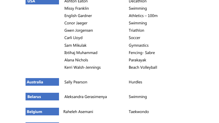 Oltre agli atleti del ROA, i seguenti atleti europei entreranno a far parte del Team Visa Rio 2016: