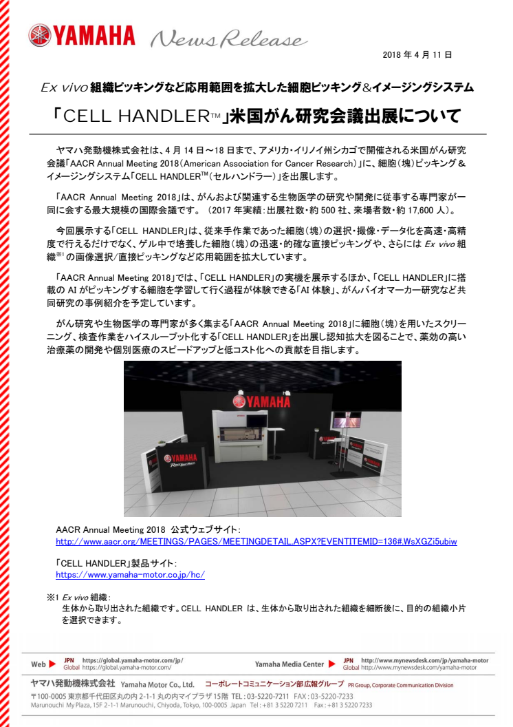 「CELL HANDLER™️」米国がん研究会議出展について Ex vivo組織ピッキングなど応用範囲を拡大した細胞ピッキング&イメージングシステム