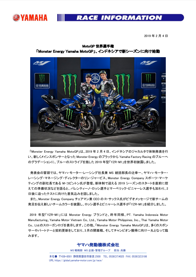 「Monster Energy Yamaha MotoGP」、インドネシアで新シーズンに向け始動 MotoGP世界選手権