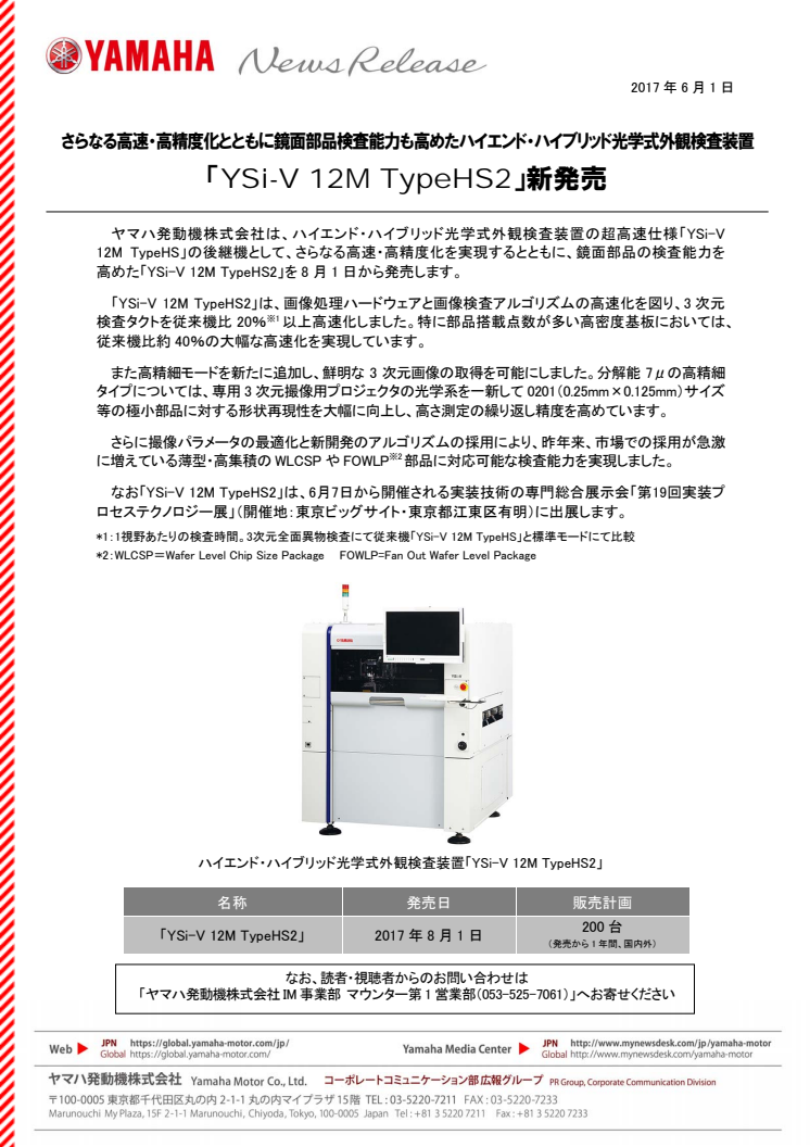 「YSi-V 12M TypeHS2」新発売 さらなる高速・高精度化とともに鏡面部品検査能力も高めたハイエンド・ハイブリッド光学式外観検査装置
