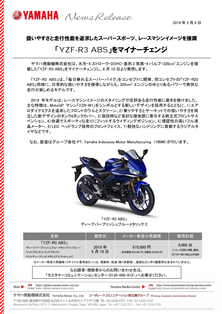 「YZF-R3 ABS」をマイナーチェンジ 扱いやすさと走行性能を追求したスーパースポーツ、レースマシンイメージを強調