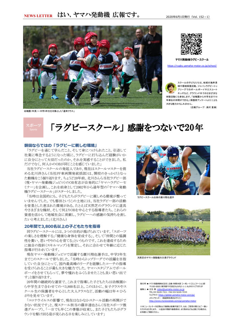 【ニュースレター】「ラグビースクール」感謝をつないで20年