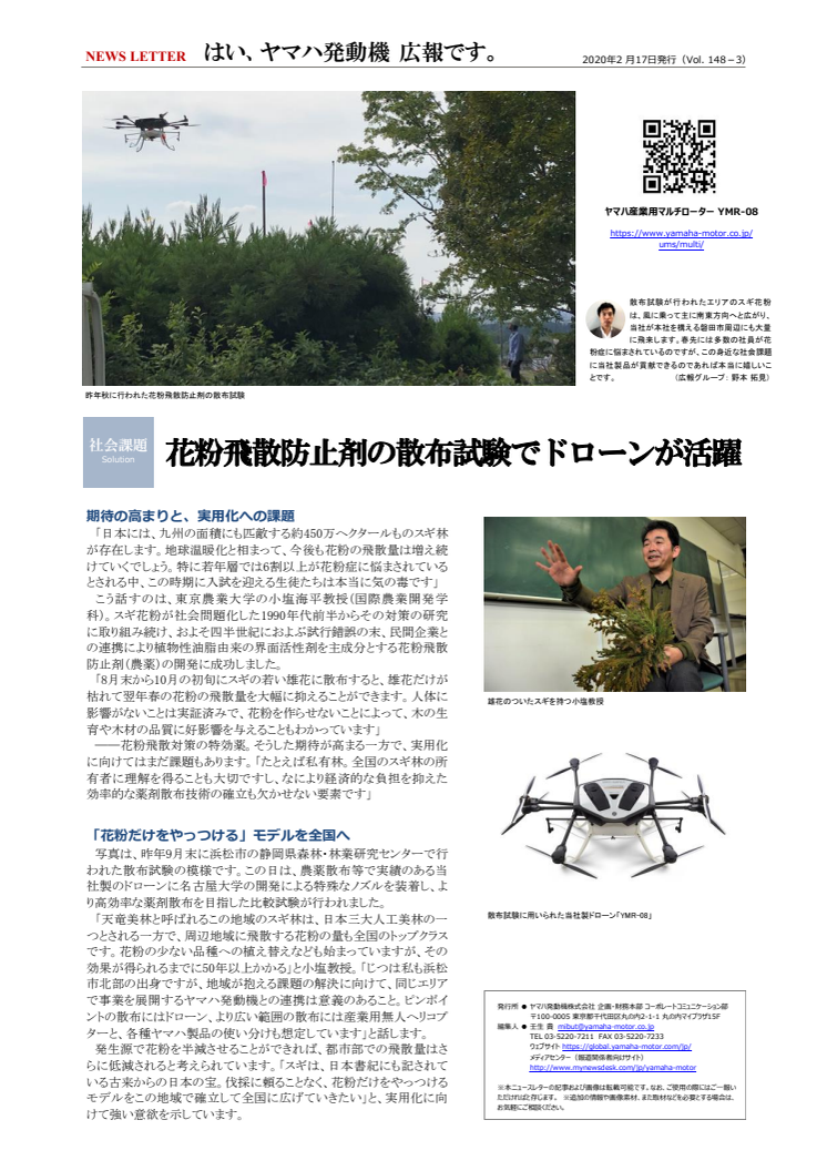 【ニュースレター】花粉飛散防止剤の散布試験でドローンが活躍