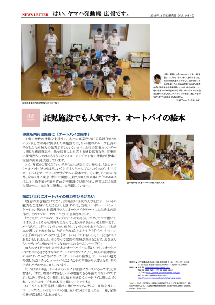 【ニュースレター】託児施設でも人気です。オートバイの絵本