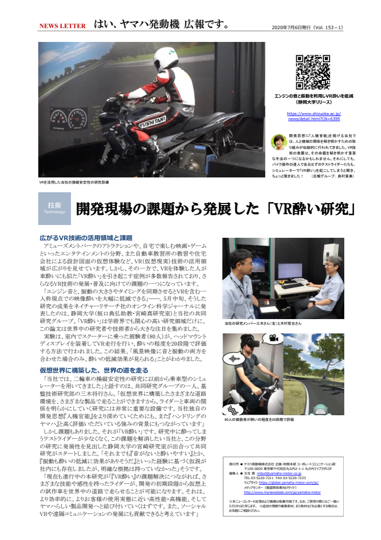 【ニュースレター】開発現場の課題から発展した「VR酔い研究」