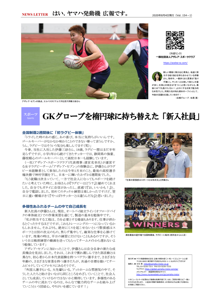 【ニュースレター】GKグローブを楕円球に持ち替えた「新入社員」