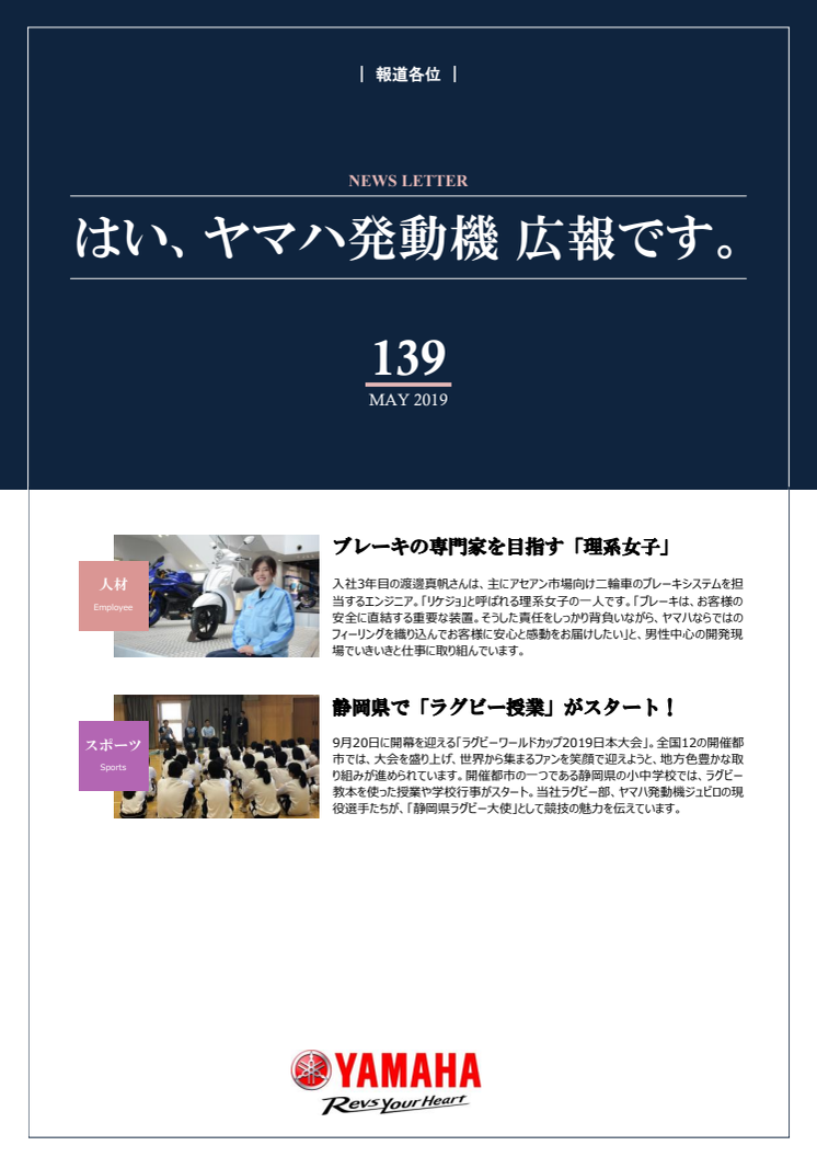 【ヤマハ発動機ニュースレター】はい、ヤマハ発動機 広報です。No.139(まとめ)
