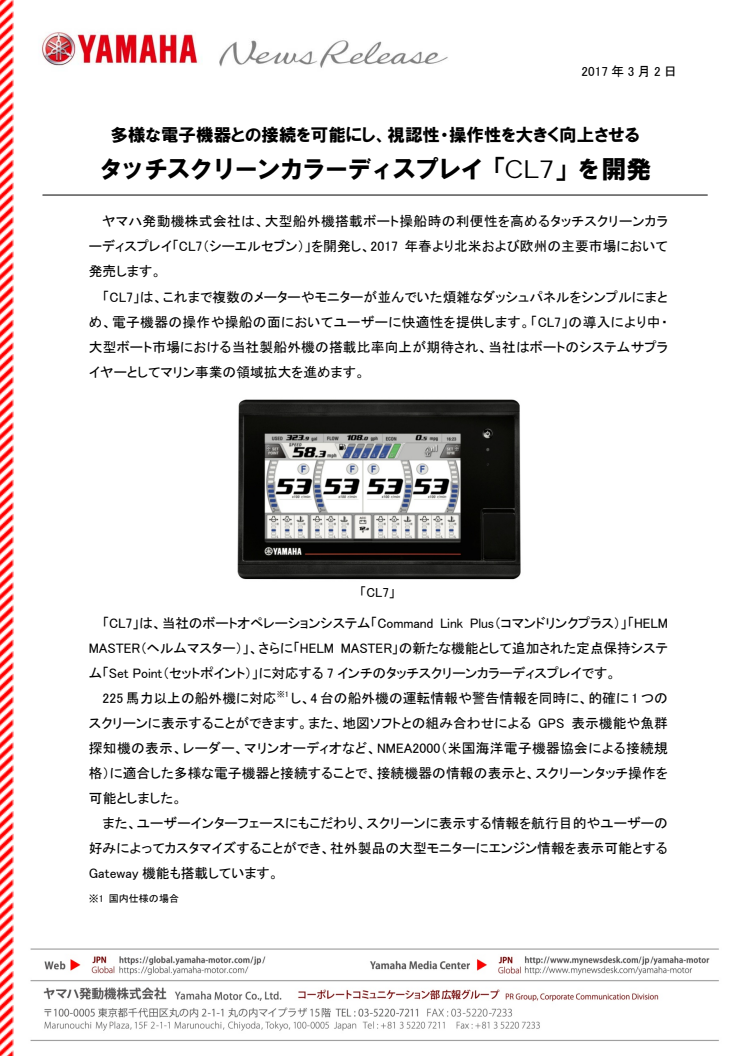 タッチスクリーンカラーディスプレイ「CL7」を開発 多様な電子機器との接続を可能にし、視認性・操作性を大きく向上させる