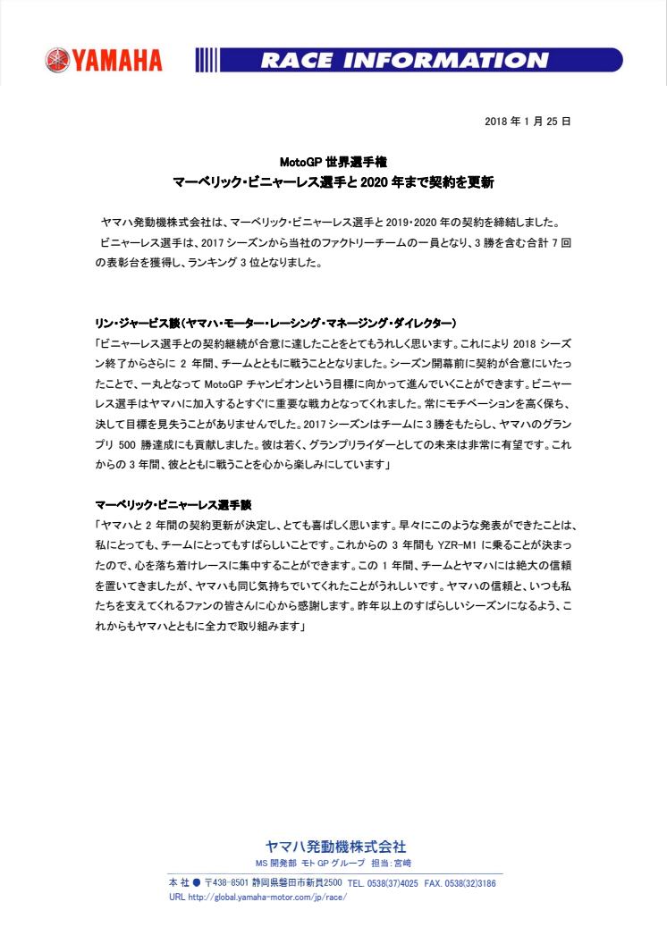 マーベリック・ビニャーレス選手と2020年まで契約を更新 MotoGP世界選手権