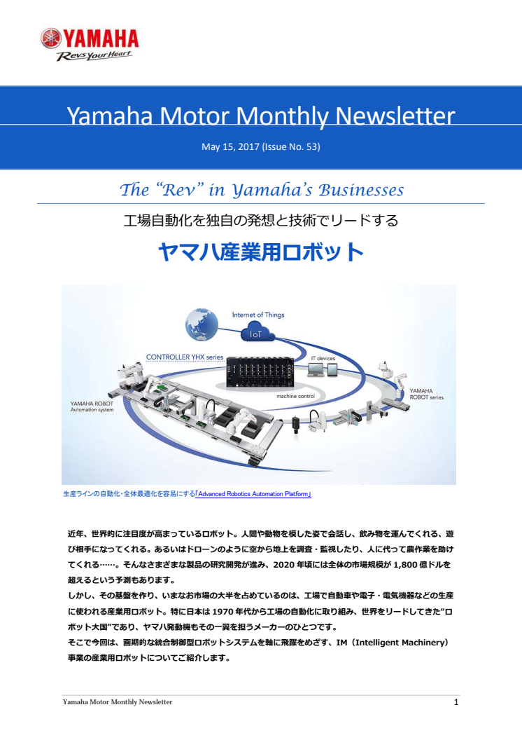 ヤマハ産業用ロボット Yamaha Motor Monthly Newsletter(May.15, 2017 No.53)