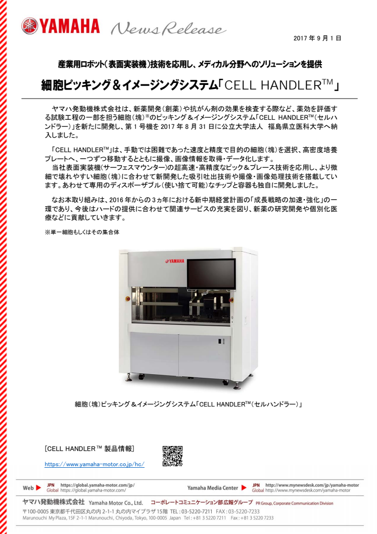 細胞ピッキング&イメージングシステム「CELL HANDLER(TM)」 産業用ロボット(表面実装機)技術を応用し、メディカル分野へのソリューションを提供