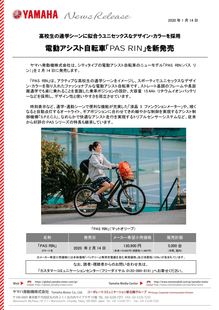 電動アシスト自転車「PAS RIN」を新発売 高校生の通学シーンに似合うユニセックスなデザイン・カラーを採用