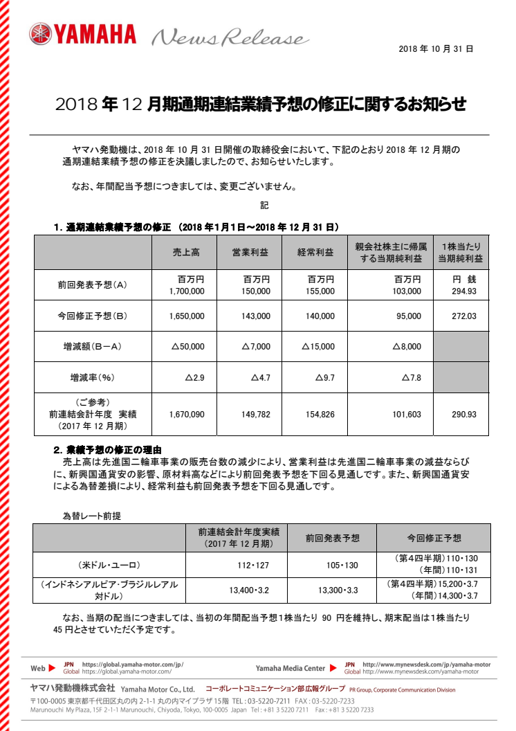 2018年12月期通期連結業績予想の修正に関するお知らせ