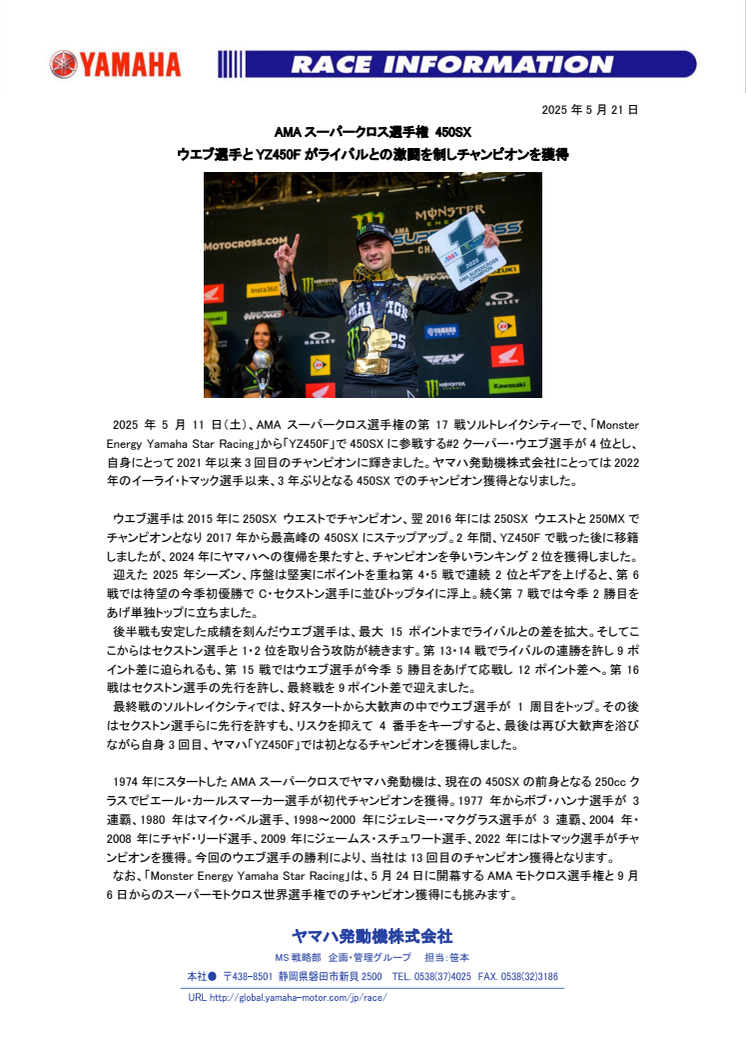Email sent to __email__. Click the link there to follow ヤマハ発動機.
