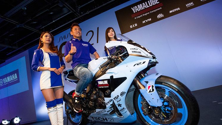ヤマハ発動機株式会社は、2019年5月22日、東京都港区のAXIS GALLERYにて「2019鈴鹿8耐 参戦体制発表会」を報道陣向けに開催し、1985年の「ヤマハ TECH21 チーム」の復刻カラーを纏った「YZF-R1」を世界初公開するとともに、スローガンである「令和の序幕、R1」のもと、大会5連覇という目標を掲げ、鈴鹿8耐に向けてスタートを切りました。 会場で特に注目を集めたのが参戦マシン「YZF-R1」のカラーリングでした。「YAMAHA FACTORY RACING TEAM」が復活した2015年から3大会はヤマハレーシングブルーを基調とし、昨年は発売20周年を記念した赤と白の特別カラーだったファクトリーマシンですが、今回は1985年の「ヤマハ TECH21 チーム」の復刻カラーを採用。MS統括部 MS戦略部部長の堀越慶太郎が「80年代後半に青春を過ごした方
