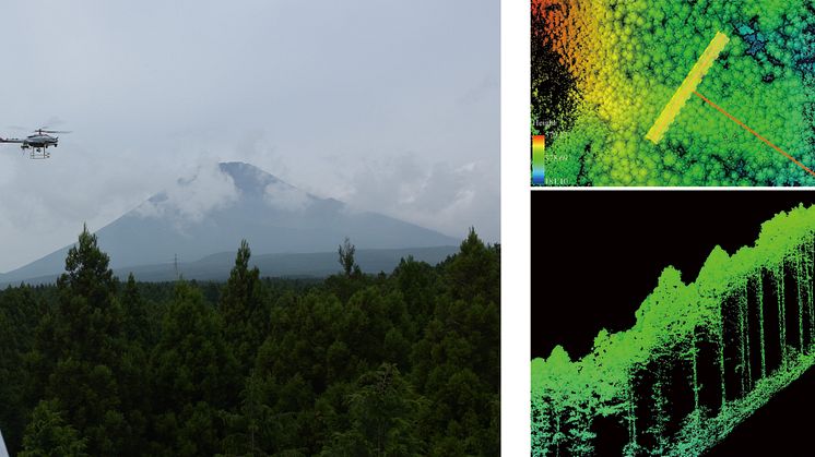 この計測は、産業用無人ヘリ(以下、無人ヘリ)を活用して、地形、樹木の密度や並び、本数・幹の直径を測定し、デジタルデータとして把握し、コンソーシアムで構築した“新たな森林管理支援システム(仮称)”を用いることで、適切かつ効率的な森林の経営管理に役立てることを狙いとしています。