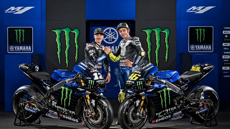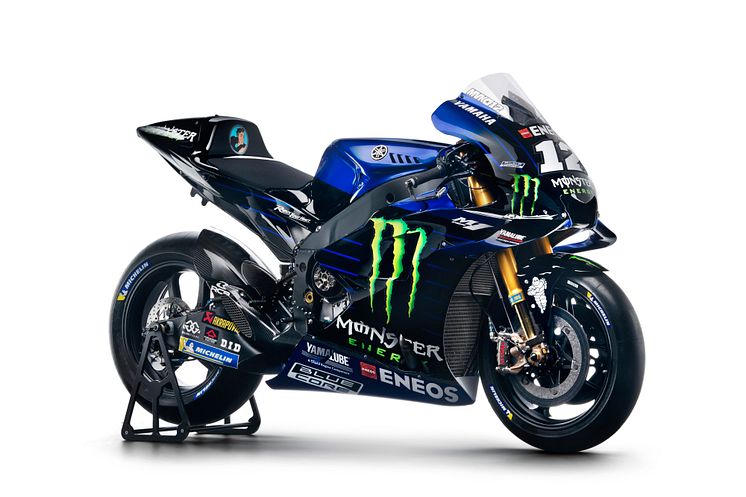 「Monster Energy Yamaha MotoGP」は、2019年2月4日、インドネシアのジャカルタで体制発表を行い、新しくメインスポンサーとなったMonster EnergyのブラックからYamaha Factory Racingのブルーへのグラデーションに、ブルーのストライプを施した2019年型「YZR-M1」を世界初披露しました。