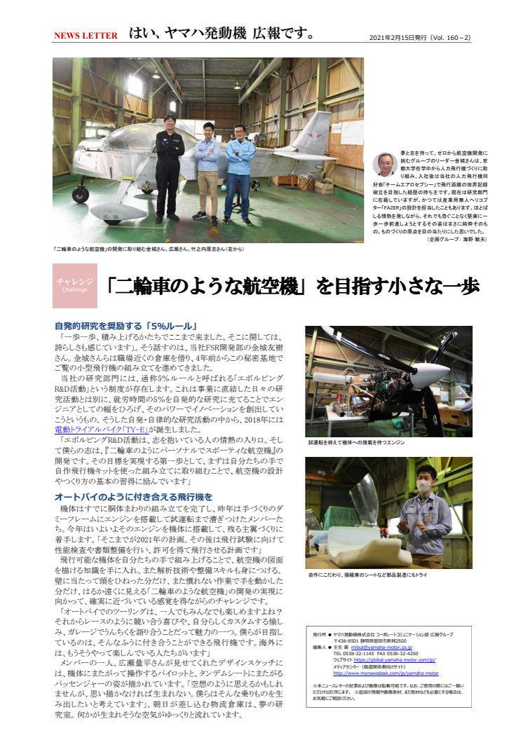 「エボルビングR&D活動は、志を抱いている人の情熱の入り口。そして僕らの志は、『二輪車のようにパーソナルでスポーティな航空機』の開発です。その目標を実現する第一歩として、まずは自分たちの手で自作飛行機キットを使った組み立てに取り組むことで、航空機の設計やつくり方の基本の習得に励んでいます」